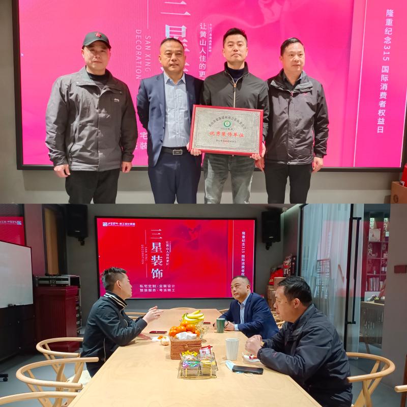3月16日,黄山市装饰建材商会“走访凝力量,携手同奋进”走访会员活动全面展开。首批次由会长叶长有,常务副会长李建宁、叶物嵩,党支部书记吴江涌带队赴装饰委员会常务副会长单位黄山中博装饰工程有限公司、黄山市三星余工装饰设计工程有限公司、黄山金福装饰设计工程有限公司,装饰委员会副会长单位黄山交换空间装饰工程有限公司实地走访并授荣誉牌匾,受到了上述单位负责人的热情接待。