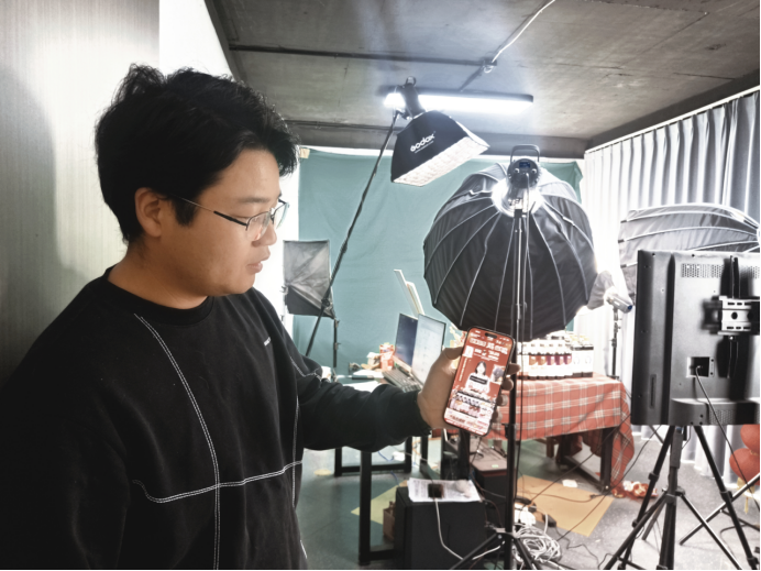 走进食卓公司,宽敞明净的办公室迎面红色醒目横幅《吾日三省吾身,业绩做到了吗?千川烧的动吗?视频火了吗?》励志又新颖。小伙伴们在电脑前忙碌,直播间主播在声情并茂的推介产品......总经理彭林把实时直播的效果在手机上展示,感受真实的购物体验。