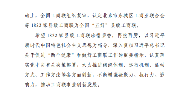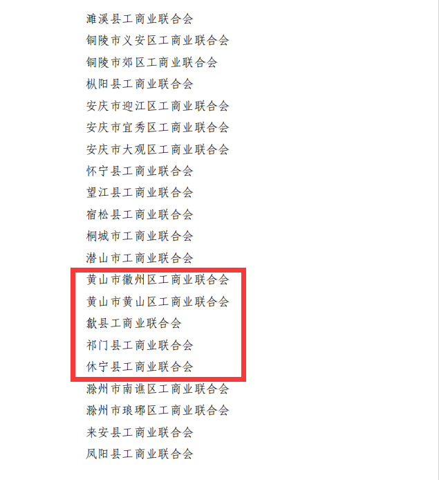 近日,全国工商联发布了《关于认定2022—2023年度全国“五好”县级工商联的通报》,1822家县级工商联被认定为全国“五好”县级工商联。其中,我市徽州区工商联、黄山区工商联、歙县工商联、祁门县工商联、休宁县工商联5家县级工商联上榜。