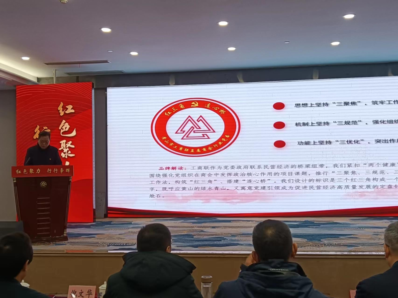 1月25日上午,市委组织部、市委非公工委在屯溪举办黄山市首届“红色聚力、行行争辉”主题大比拼活动,14个市级行业(综合)党委负责人采用“PPT+现场汇报”方式,逐一进行党建品牌推介。市工商联二级调研员、直属商会行业党委副书记张玉明首个登场,向大会推介了“红三角、连心桥”党建品牌,并在全场角逐中名列第5名,喜获三等奖。