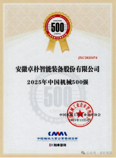 黄山市政协委员、黄山市工商联副主席、上海市黄山经济文化交流促进会会长、安徽卓朴智能装备股份有限公司董事长方建辉带领企业锐意进取、深耕智能装备领域,凭借突出的技术创新能力、过硬的产品品质与强劲的市场竞争力,成功跻2025中国机械500强榜单。